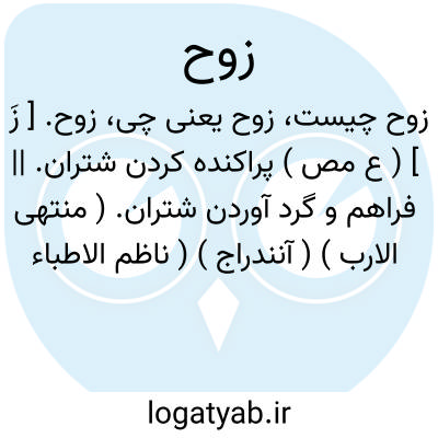 زوح. [ زَ ] ( ع مص ) پراکنده کردن شتران. || فراهم و گرد آوردن شتران. ( منتهی الارب ) ( آنندراج ) ( ناظم الاطباء ) ( از اقرب الموارد ).از لغات اضداد است. ( منتهی الارب ) ( از اقرب الموارد ). || رفتن و دور شدن. ( منتهی الارب ) ( آنندراج ) ( از اقرب الموارد ) ( از ناظم الاطباء ). || زایل گردیدن. ( ناظم الاطباء ) ( از اقرب الموارد ).