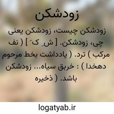 زودشکن. [ ش ِ ک َ ] ( نف مرکب ) ترد. ( یادداشت بخط مرحوم دهخدا ): خربق سیاه... زودشکن باشد. ( ذخیره خوارزمشاهی، یادداشت ایضاً ). بوره ارمنی بهتر باشد...متخلخل و زودشکن و سپید و یا گلگون بود. ( ایضاً ).