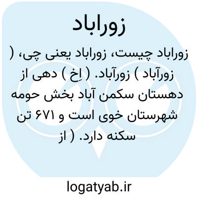 ( زورآباد ) زورآباد. ( اِخ ) دهی از دهستان سکمن آباد بخش حومه شهرستان خوی است و 671 تن سکنه دارد. ( از فرهنگ جغرافیایی ایران ج 4 ).