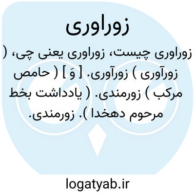( زورآوری ) زورآوری. [ وَ ] ( حامص مرکب ) زورمندی. ( یادداشت بخط مرحوم دهخدا ). زورمندی. نیرومندی. پهلوانی. ( فرهنگ فارسی معین ). قوت و طاقت و نیرو و زبردستی و غلبه. ( ناظم الاطباء ): استاد را به زورآوری بر من دست نبود. ( گلستان ).