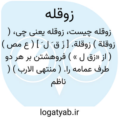 ( زوقلة ) زوقلة. [ زَ ق َ ل َ ] ( ع مص ) ( از «زق ل » ) فروهشتن بر هر دو طرف عمامه را. ( منتهی الارب ) ( ناظم الاطباء ) ( از اقرب الموارد ).