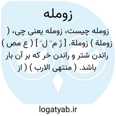 ( زوملة ) زوملة. [ زَ م َ ل َ ] ( ع مص ) راندن شتر و راندن خر که بر آن بار باشد. ( منتهی الارب ) ( از ناظم الاطباء ). || ( اِ ) خر با بارش. ( ناظم الاطباء ). || ابن زوملة؛ پسر راه. || هو ابن زوملتها؛ او دانای آن است. ( منتهی الارب ) ( ناظم الاطباء ).