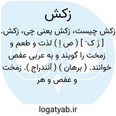 زکش. [ زَ ک َ ] ( ص اِ ) لذت و طعم و زمخت را گویند و به عربی عفص خوانند. ( برهان ) ( آنندراج ). زمخت و عفص و هر چیز که دهن را جمع کند. ( ناظم الاطباء ).زمخت. ( فرهنگ جهانگیری ) ( فرهنگ رشیدی ):