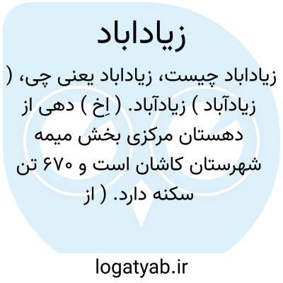( زیادآباد ) زیادآباد. ( اِخ ) دهی از دهستان مرکزی بخش میمه شهرستان کاشان است و 670 تن سکنه دارد. ( از فرهنگ جغرافیایی ایران ج 3 ).
