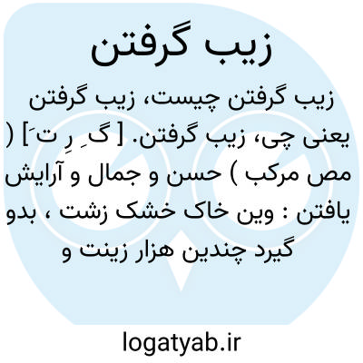 لغت نامه دهخدا زیب گرفتن. [ گ ِ رِ ت َ] ( مص مرکب ) حسن و جمال و آرایش یافتن: وین خاک خشک زشت، بدو گیردچندین هزار زینت و زیب و فر.ناصرخسرو.