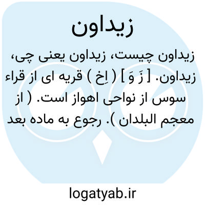 لغت نامه دهخدا زیداون. [ زَ وَ ] ( اِخ ) قریه ای از قراء سوس از نواحی اهواز است. ( از معجم البلدان ). رجوع به ماده بعد شود.