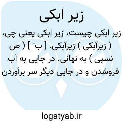 ( زیرآبکی ) زیرآبکی. [ ب َ ] ( ص نسبی ) به نهانی. در جایی به آب فروشدن و در جایی دیگر سر برآوردن شناگران. ( یادداشت بخط مرحوم دهخدا ). نوعی شناست که شناوران بدان ترتیب در زیر آب راه پیمایند و از جایی در آب سر فروبرده از جای دیگر سر برآورند. گاه در مقام مزاح و استعاره «زیرآبکی رفتن » بمعنی کار پنهانی کردن و یواشکی عملی را انجام دادن استعمال میشود. ( فرهنگ عامیانه جمال زاده ).