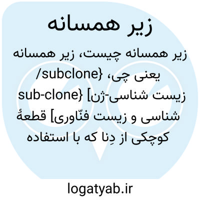 فرهنگستان زبان و ادب {subclone/ sub-clone} [زیست شناسی-ژن شناسی و زیست فنّاوری] قطعۀ کوچکی از دِنا که با استفاده از زی مایه های ویژه بُر از یک قطعۀ همسانه سازی شدۀ بزرگ تر جدا می شود و خود در یک ناقل همسانه سازی می شود