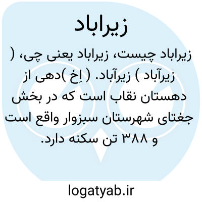 ( زیرآباد ) زیرآباد. ( اِخ )دهی از دهستان نقاب است که در بخش جغتای شهرستان سبزوار واقع است و 388 تن سکنه دارد. مزار پیر خواجه نجم الدین در این ده است. ( از فرهنگ جغرافیایی ایران ج 9 ). رجوع به تاریخ غازان چ کارل یان ص 19 و 20 شود.