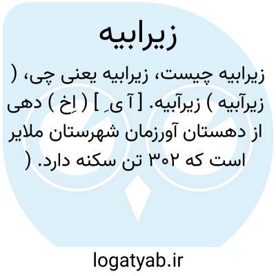 ( زیرآبیه ) زیرآبیه. [ آ ی ِ ] ( اِخ ) دهی از دهستان آورزمان شهرستان ملایر است که 302 تن سکنه دارد. ( از فرهنگ جغرافیایی ایران ج 5 ).