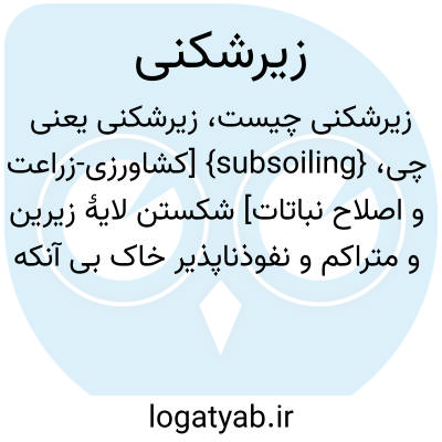 {subsoiling} [کشاورزی-زراعت و اصلاح نباتات] شکستن لایۀ زیرین و متراکم و نفوذناپذیر خاک بی آنکه لایۀ رویی زیرورو شود