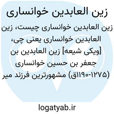 [ویکی شیعه] زین العابدین بن جعفر بن حسین خوانساری (۱۱۹۰-۱۲۷۵ق) مشهورترین فرزند میر صغیر، از فقیهان شیعه در قرن سیزدهم قمری بود. او آثاری در فقه و اصول دارد و به استنساخ کتاب های پیشینیان نیز می پرداخت. نوادگان او به چهارسوقی یا چهارسویی شهرت دارند. مشهورترین فرزند او محمدباقر صاحب روضات الجنات است و نواده او سید محمد مهدی خوانساری، مرجع تقلید جمعی از مردم اصفهان به شمار می رفت.