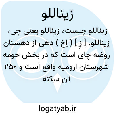 زیناللو. [ زِ ] ( اِخ ) دهی از دهستان روضه چای است که در بخش حومه شهرستان ارومیه واقع است و 250 تن سکنه دارد. ( از فرهنگ جغرافیایی ایران ج 4 ).
