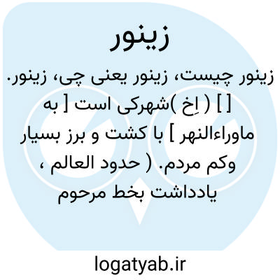 زینور. [ ] ( اِخ )شهرکی است [ به ماوراءالنهر ] با کشت و برز بسیار وکم مردم. ( حدود العالم، یادداشت بخط مرحوم دهخدا ).