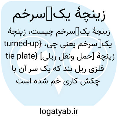 {turned-up tie plate} [حمل ونقل ریلی] زینچۀ فلزی ریل بند که یک سر آن با چکش کاری خم شده است