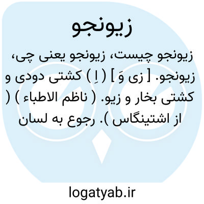 زیونجو. [ زی وَ ] ( اِ ) کشتی دودی و کشتی بخار و زیو. ( ناظم الاطباء ) ( از اشتینگاس ). رجوع به لسان العجم شعوری ج 2 ورق 46 شود.