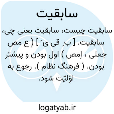 سابقیت. [ ب ِ قی ی َ ] ( ع مص جعلی، اِمص ) اول بودن و پیشتر بودن. ( فرهنگ نظام ). رجوع به اوّلیّت شود.