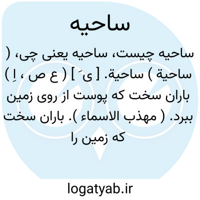 ( ساحیة ) ساحیة. [ ی َ ] ( ع ص، اِ ) باران سخت که پوست از روی زمین ببرد. ( مهذب الاسماء ). باران سخت که زمین را رندد. || سیل که همه زمین رابکاود و همه چیز را برد. ( منتهی الارب ) ( آنندراج ).