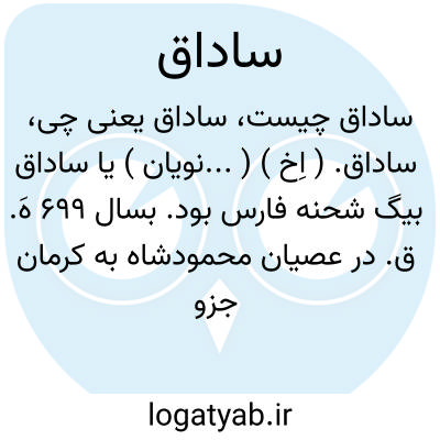 ساداق. ( اِخ ) (...نویان ) یا ساداق بیگ شحنه فارس بود. بسال 699 هَ. ق. در عصیان محمودشاه به کرمان جزو امرائی بود که بفرمان غازان ایلخان مأمور سرکوبی او شد و بعد از ماهها محاصره ساداق بیگ او را گرفت و بخواری تمام به اردو فرستاد.