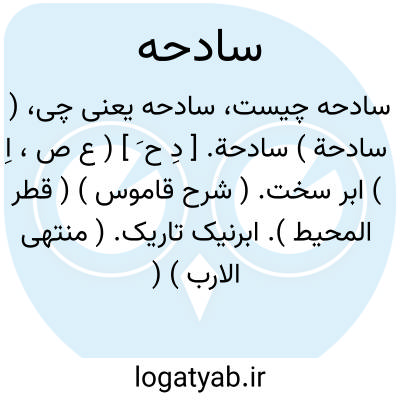( سادحة ) سادحة. [ دِ ح َ ] ( ع ص، اِ ) ابر سخت. ( شرح قاموس ) ( قطر المحیط ). ابرنیک تاریک. ( منتهی الارب ) ( آنندراج ). السحابة الشدیدة التی تصرع کل شی ٔ. ( تاج العروس ) ( اقرب الموارد ).