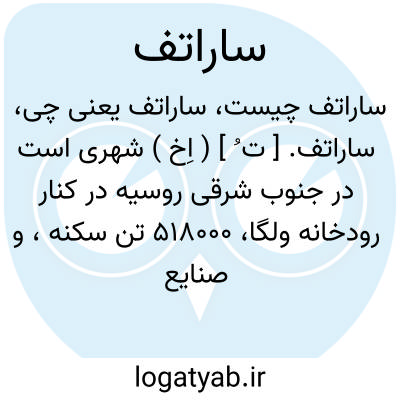 ساراتف. [ ت ُ ] ( اِخ ) شهری است در جنوب شرقی روسیه در کنار رودخانه ولگا، 518000 تن سکنه، و صنایع فلزکاری و مواد غذائی دارد.