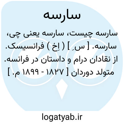 سارسه. [ س ِ ] ( اِخ ) فرانسیسک. از نقادان درام و داستان در فرانسه. متولد دوردان [ 1827 - 1899 م. ] است.مجموعه انتقادات نمایشی او در کتابی بنام «چهل سال نمایش » تدوین شده است.