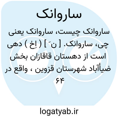 ساروانک. [ ن َ ] ( اِخ ) دهی است از دهستان قاقازان بخش ضیأآباد شهرستان قزوین، واقع در 64 هزارگزی شمال ضیأآباد. کوهستانی، سردسیر، آب آن از چشمه سار، و محصول آن غلات، عدس، لوبیا، یونجه و لبنیات است، 231 تن سکنه دارد که به زراعت اشتغال دارند. از صنایع دستی محلی بافتن جاجیم و جوال در آن معمول است.راه مالرو دارد. ( از فرهنگ جغرافیائی ایران ج 1 ).