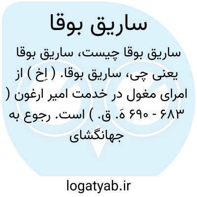 ساریق بوقا. ( اِخ ) از امرای مغول در خدمت امیر ارغون ( 683 - 690 هَ. ق. ) است. رجوع به جهانگشای جوینی چ قزوینی ج 2 ص 258 شود.