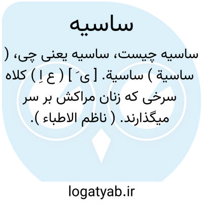 لغت نامه دهخدا ( ساسیة ) ساسیة. [ ی َ ] ( ع اِ ) کلاه سرخی که زنان مراکش بر سر میگذارند. ( ناظم الاطباء ).