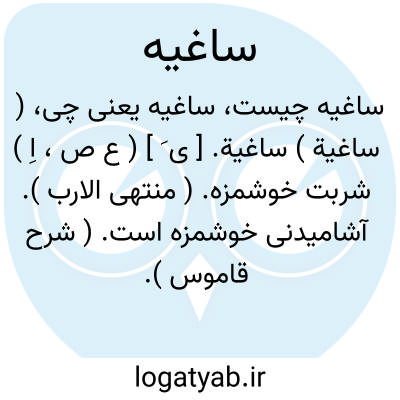 لغت نامه دهخدا ( ساغیة ) ساغیة. [ ی َ ] ( ع ص، اِ ) شربت خوشمزه. ( منتهی الارب ). آشامیدنی خوشمزه است. ( شرح قاموس ).