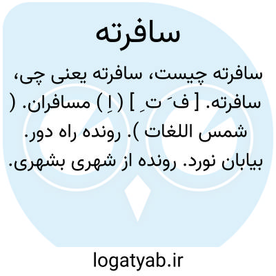 سافرته. [ ف َ ت ِ ] ( اِ ) مسافران. ( شمس اللغات ). رونده راه دور. بیابان نورد. رونده از شهری بشهری. مسافر. ( فرهنگ خطی کتابخانه لغت نامه ).