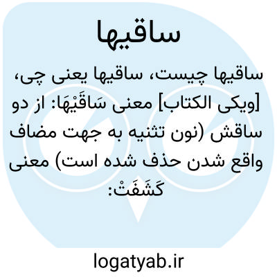 دانشنامه اسلامی [ویکی الکتاب] معنی سَاقَیْهَا: از دو ساقش (نون تثنیه به جهت مضاف واقع شدن حذف شده است)معنی کَشَفَتْ: بالا زد (در عبارت"کَشَفَتْ عَن سَاقَیْهَا"یعنی دامن لباسش را بالا زد)ریشه کلمه: سوق (۱۷ بار)ها (۱۳۹۹ بار)