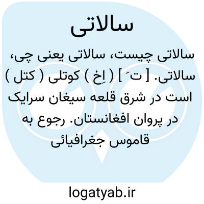 سالاتی. [ ت َ ] ( اِخ ) کوتلی ( کتل ) است در شرق قلعه سیغان سرایک در پروان افغانستان. رجوع به قاموس جغرافیائی افغانستان شود.