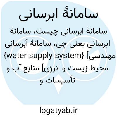 {water supply system} [مهندسی محیط زیست و انرژی] منابع آب و تأسیسات و زمین و تجهیزات و تشکیلاتی که برای جمع آوری و تصفیه و ذخیره سازی و توزیع آب آشامیدنی مورد استفاده قرار می گیرد
