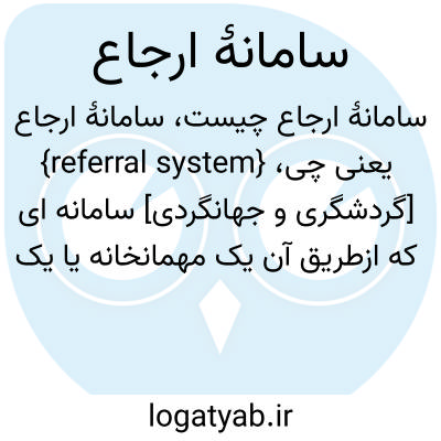 {referral system} [گردشگری و جهانگردی] سامانه ای که ازطریق آن یک مهمانخانه یا یک غذاخوری به معرفی یا ذخیرۀ جا در مهمانخانه یا غذاخوری دیگری می پردازد و کارمزد آن را نیز دریافت می کند