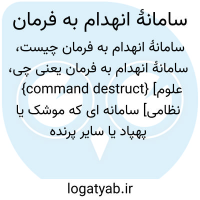 {command destruct} [علوم نظامی] سامانه ای که موشک یا پهپاد یا سایر پرنده های بدون سرنشین را در هنگام بروز نقص فنی، برای جلوگیری از آسیب های جانبی، منفجر می کند متـ. انهدام به فرمان