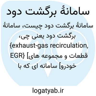 {exhaust-gas recirculation, EGR} [قطعات و مجموعه های خودرو] سامانه ای که با هدف کاهش آلاینده های موتور (NOx ) بخشی از گازهای خروجی موتور را به ورودی سیلندر هدایت می کند