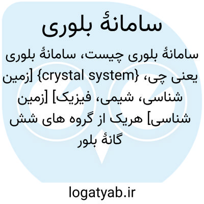{crystal system} [زمین شناسی، شیمی، فیزیک] [زمین شناسی] هریک از گروه های شش گانۀ بلور براساس تقارن وجوه بلوری آنها [فیزیک] تقسیم بندی هفت گانۀ شبکه های بلوری براساس بالاترین ردۀ محور چرخشی مشترک
