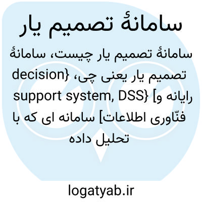 {decision support system, DSS} [رایانه و فنّاوری اطلاعات] سامانه ای که با تحلیل داده های پیشین، گزارش های آماری مناسب را برای تصمیم گیری در اختیار مدیران قرار می دهد