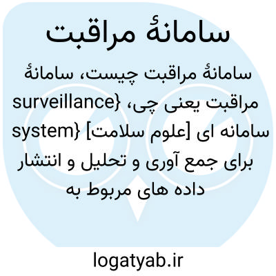 {surveillance system} [علوم سلامت] سامانه ای برای جمع آوری و تحلیل و انتشار داده های مربوط به برنامه های سلامت همگانی متـ. سامانۀ فرابینی