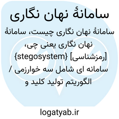 {stegosystem} [رمزشناسی] سامانه ای شامل سه خوارزمی / الگوریتم تولید کلید و کدگذاری و کدگشایی نهان نگاشتی که ورودی آن شامل مؤلفه های بیتی و پوشانه و پیامی است که باید نهفته شود و خروجی آن نهانه است