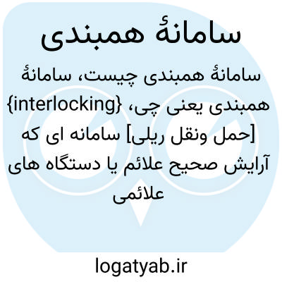{interlocking} [حمل ونقل ریلی] سامانه ای که آرایش صحیح علائم یا دستگاه های علائمی را به منظور ایمنی سیر قطار تأمین و تضمین می کند