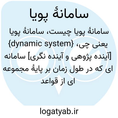 {dynamic system} [آینده پژوهی و آینده نگری] سامانه ای که در طول زمان بر پایۀ مجموعه ای از قواعد ثابت تغییر می کند که این مجموعه قواعد چگونگی تغییر سامانه از حالتی به حالت دیگر را تعیین می کند