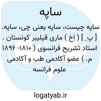 ساپه. [ پ ِ ] ( اِخ ) ماری قیلیبر کونستان. استاد تشریح فرانسوی ( 1810- 1896 م. ) عضو آکادمی طب و آکادمی علوم فرانسه بود. تألیفات متعددی در طب از او بیادگار مانده است.