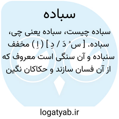 سباده. [ س ُ دَ / دِ ] ( اِ ) مخفف سنباده و آن سنگی است معروف که از آن فسان سازند و حکاکان نگین انگشتری و امثال آن را بدان تراشند. ( برهان ).سنگی که از آن فسان سازند. مخفف سنباده. ( رشیدی ).