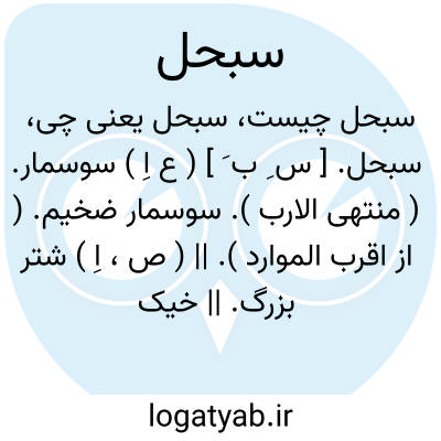 سبحل. [ س ِ ب َ ] ( ع اِ ) سوسمار. ( منتهی الارب ). سوسمار ضخیم. ( از اقرب الموارد ). || ( ص، اِ ) شتر بزرگ. || خیک ضخیم. ( منتهی الارب ) ( از اقرب الموارد ). || دختر فربه. ( منتهی الارب ). || جاریة. ( اقرب الموارد ).