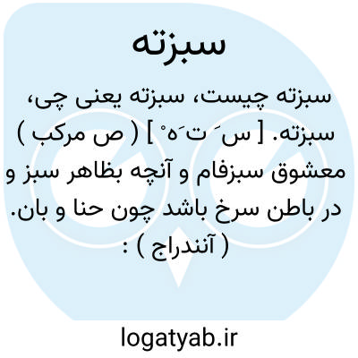 لغت نامه دهخدا سبزته. [ س َ ت َه ْ ] ( ص مرکب ) معشوق سبزفام و آنچه بظاهر سبز و در باطن سرخ باشد چون حنا و بان. ( آنندراج ): چون نباشد سبزته گلگون رخ سبزان هندکم ز ابر دیده خون در پایشان مالیده ام.کلیم ( از آنندراج ).