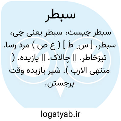 سبطر. [ س ِ طَ ] ( ع ص ) مرد رسا. تیزخاطر. || چالاک. || یازیده. ( منتهی الارب ). شیر یازیده وقت برجستن. یقال: اسد سبطر. ( از اقرب الموارد ) ( منتهی الارب ). ج، سبطرات. || دراز از هر چیزی. ( منتهی الارب ). || موی فروهشته دراز را گویند: شعر سبطر. ( از اقرب الموارد ). موی فروهشته دراز ممتد از مردان. ( از متن اللغة ). || شتر دراز بر روی زمین. سریع. ج، سبطرات. ( از متن اللغة ). جِمال سبطرات؛ ای طوال، و تاؤُه لیست للتأنیث و انما هی کقولهم حماسات و رجالات فی جمع المذکر. ( منتهی الارب ) ( از اقرب الموارد ).