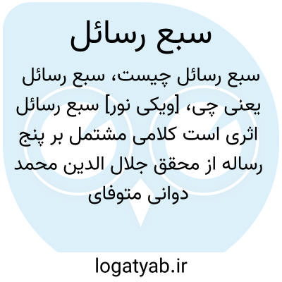 [ویکی نور] سبع رسائل اثری است کلامی مشتمل بر پنج رساله از محقق جلال الدین محمد دوانی متوفای 908 ه-ق، یک رساله از ملا اسماعیل خواجوئی اصفهانی متوفای 1173 ه-ق و رساله ای دیگر از سید احمد تویسرکانی نگارنده اثر حاضر.
