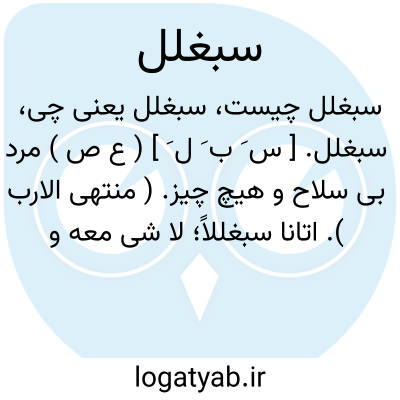 سبغلل. [ س َ ب َ ل َ ] ( ع ص ) مرد بی سلاح و هیچ چیز. ( منتهی الارب ). اتانا سبغللاً؛ لا شی معه و لا سلاح علیه. ( اقرب الموارد ) ( منتهی الارب ).